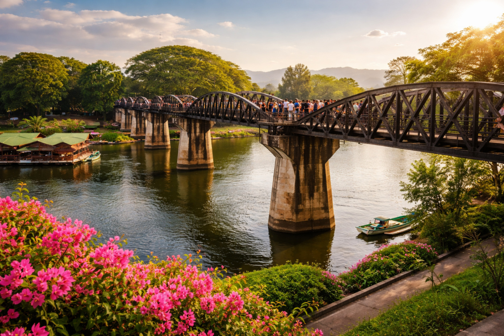 Auch die berühmte Brücke am Kwai liegt hier – ein Stück Geschichte inmitten tropischer Kulisse: